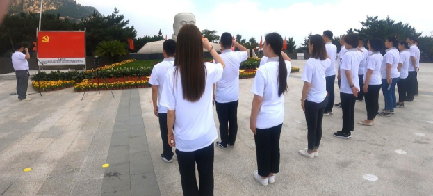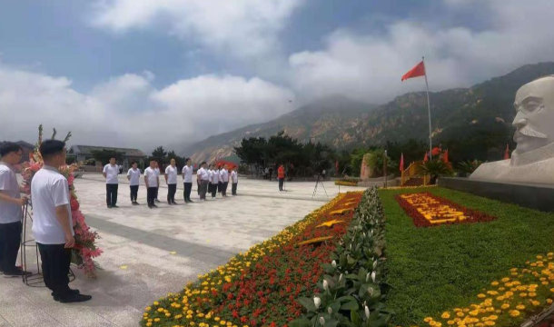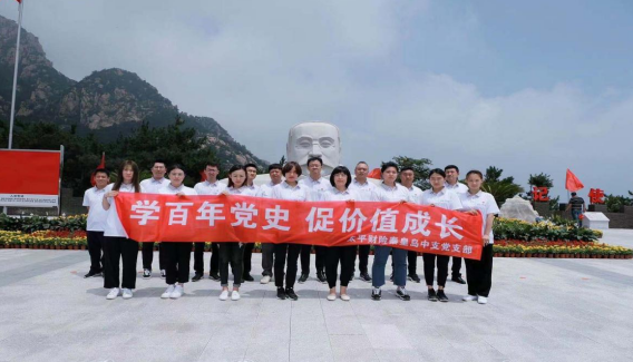 为深入开展党史学习教育活动,6月27日上午,在党支部书记涂玉同志的带领下,秦皇岛中支党支部全体党员赴昌黎五峰山李大钊革命活动旧址开展“学百年党史、促价值成长”现场研学活动。  全体党员同志在李大钊雕像下整齐列队,敬献花篮,支部书记涂玉同志和总经理姚楠同志仔细整理挽联,带领全体党员向雕像三鞠躬,表达对李大钊同志的深切缅怀和敬仰之情。涂玉同志带领大家重温入党誓词,句句铿锵有力的誓言回荡在山间,更加坚定党员的共产主义理想信念。