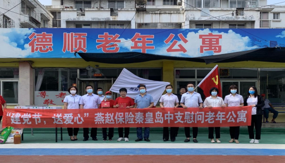 “五星红旗迎风飘扬……”“没有共产党就没有新中国……”一首首红歌在秦皇岛中支职场回荡,每个人都热血澎湃期待着大会的召开,大家用歌声跟着旋律表达着自己的爱国热情,中支洋溢着浓浓的爱国激情。 二、集中观看建党100周年庆祝大会: 上午8:00,中支全体党员、积极分子和共青团员在会议室集中观看了《庆祝中国共产党成立100周年大会》的直播盛况,认真聆听中央总书记、国家主席、中央军委主席习近平发表的重要讲话。通过组织观看庆祝大会,让我们更加明白以史为鉴的重要性,更加深刻认识了党的百年光辉历程。会后,中支党支部书记范劲松寄语全体党员,我们要继续发扬中国共产党的伟大精神,跟党走,听党话,对党忠诚,在各自的工作岗位践行共产党员初心使命,发挥基层党支部的战斗堡垒作用,永葆共产党员的先进本色。  三、开展“建党节、送爱心”慰问活动  秦皇岛中支党支部践行“学党史,为民办实事”,组织开展了“建党节 献爱心”活动。中支全体党员干部及职工为德顺老年公寓捐款共计4134元,购买“爱心罐头”18箱。 7月1日下午,在中支总经理室的带领下,全体党员和积极分子来到德顺老年公寓看望了那里的老人和儿童,中支党支部书记范劲松、副总经理李金和和副总经理王伊帆关切地询问了他们身体状况,并递送了爱心捐款和米面油,传递党的关怀和温暖,代表燕赵财险秦皇岛中支党支部向他们至以亲切的问候和崇高的敬意。“爱心妈妈”对此表达了感谢,并为大家讲述了一些孩子的成立故事,为所有党员和积极分子上了一堂具有特殊意义的党课。 秦皇岛市山海关区“爱心妈妈”张秀霞(人称“张妈妈”)是一位铁骨铮铮的巾帼英雄,更是秦皇岛人民引以为豪的骄傲。1995年开始,张秀霞助力山海关区社会福利事业发展,以政府发放的最低生活保证金收养孤寡、残疾老人300余人,帮扶困境儿童70多人。20多年来培养出8名优秀大学生,其中一人已考取硕士研究生,现已加入张伯礼院士团队学习。为了让老人和孩子在公寓里生活得更有保障、解决资金问题,张秀霞于2003年把即将破产的原山海关食品厂的罐头车间,改造成福利加工厂,季节性地生产水果罐头,靠这些微薄的收入,来供养这百余位“爸爸妈妈”和“儿子女儿”。