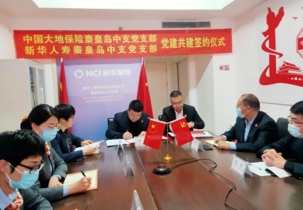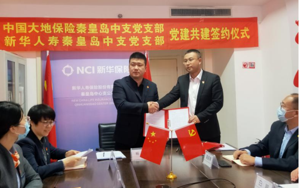 首先,双方就支部2021年党建、党史学习教育开展情况进行分享交流,随后在两支部党员的共同见证下,新华保险秦皇岛中支党支部书记杨康同志和中国大地保险秦皇岛中支党支部许铁军同志签订了《党支部共建协议书》,确定了双方共建的工作目标、工作机制和工作内容。