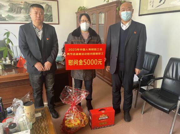 1月16日在新春佳节前,为了确保困难职工度过一个愉快的祥和的春节,国寿财险秦皇岛中支班子成员赴抚宁区支公司慰问困难员工,为其送去了慰问品和慰问金,在这寒冬腊月送去了国寿财大家庭的温暖。国寿财险秦皇岛中支副总经理李军总与困难职工亲切交谈,详细了解了员工的身体、家庭生活情况及实际困难与面临的突出问题,感谢其在岗位上为公司的发展所作出的积极贡献,并鼓励她在新的一年里保持积极向上的生活态度,战胜困难,踏实工作、客观生活。同时叮嘱她有困难可随时向公司反应。面对公司党委、工会的关怀和帮助,困难员工表示要一如既往克服困难、努力工作,为公司更好的发展贡献自己的力量,争取把工作干的更好,把日子过得更好。