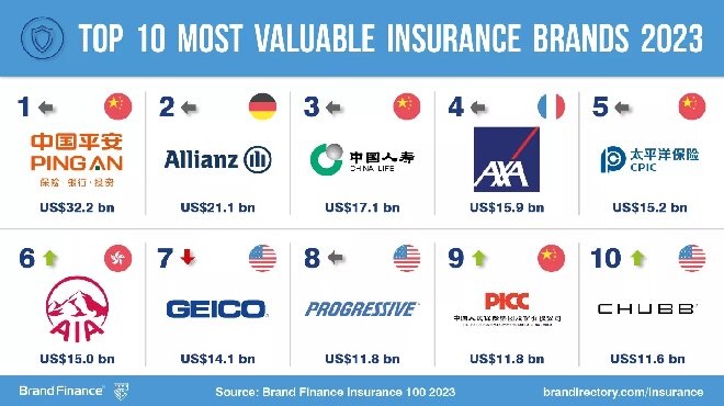 2023全球保险品牌价值100排行榜TOP10