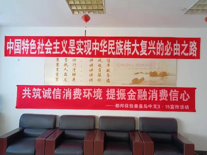 都邦财产保险秦皇岛中支开展职场宣传条幅标语排查