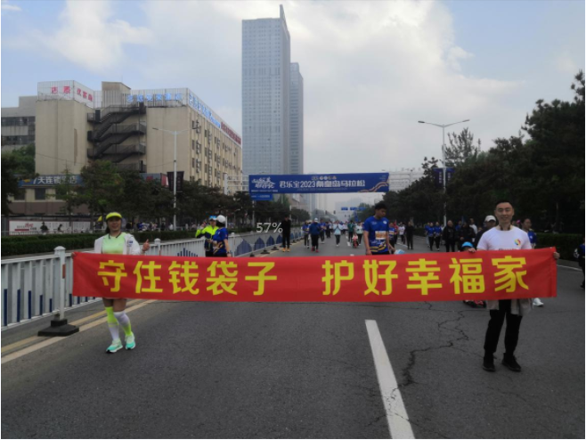 比赛现场,我司人员驻扎在起点、终点,一边为参赛运动员加油助威,一边向周围群众普及防范非法集资基础知识,向过往观众讲解当前非法集资常见案例,提醒广大群众莫贪高利,不贪小便宜,提高防范意识。参加比赛人员手持条幅,提醒港城百姓“守住钱袋子,护好幸福家”。