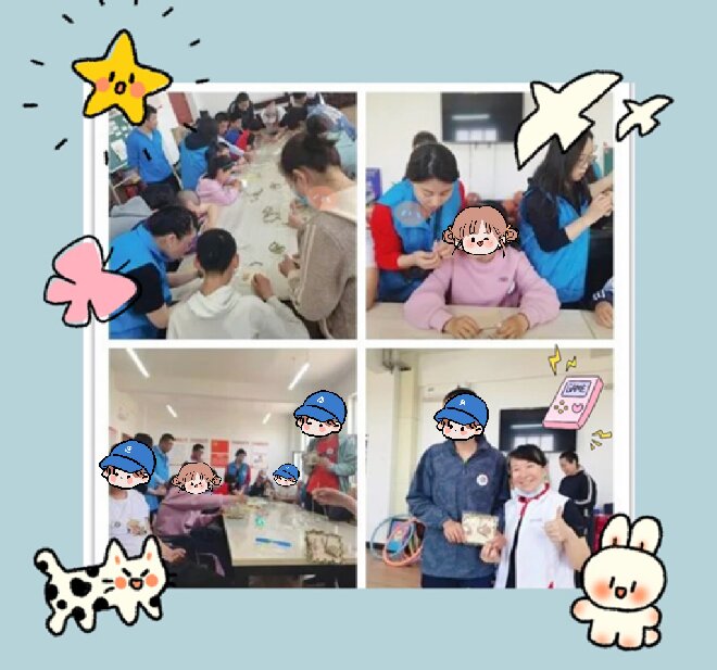 最后,在志愿者们的带领下,孩子们又开始了精细手工制作活动。这些看起来简单的小手工,但对于手眼协调能力弱,小肌肉发育迟缓有障碍的星宝们却是个挑战。善良的志愿者们不断地用包容、耐心和鼓励赞赏去辅助他们,“爱”让“碍”不再,孩子们也终于完成了属于自己