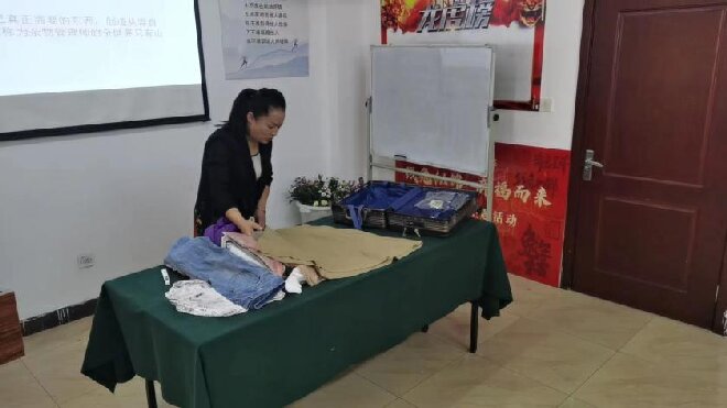 活动中,收纳整理师通过交流“断舍离”的绿色理念让大家意识到优化家庭空间的重要性,并且借助收纳前和收纳后的图文对比介绍了家庭收纳的一般步骤和家务整理的知识干货。收纳师还将“具体问题具体分析”的科学方法纳入了家庭空间的整理收纳过程,传授了不同物品、不同空间的收纳技巧,在授课老师的手中,看似简单的衣物折叠变成了一项有趣的创作。同时,大家按照收纳师讲解的收纳方法,进行了衣物折叠尝试。