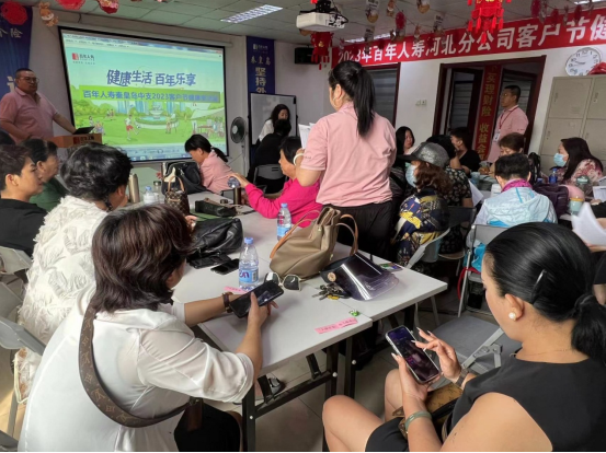 在百年人寿发展的历程中,始终坚持以客户为中心,不断提升服务质量和水平。为了增加客户对我们公司的了解,建立更加紧密的关系。2023年8月16日百年人寿秦皇岛中支本部营业区开展了“健康生活,百年乐享”客户联谊活动。 上午9点,活动正式开始。为了让客户对我们的产品和服务有更深入的了解,我们精心策划了一系列的活动和互动环节。首先,我们在活动现场进行专业的产品介绍和演示。为客户提供一个了解产品特点和优势的机会,通过使用图表、案例和实际数据。也展示了我们公司的专业实力。另外,我们还设计了一些富有趣味性的互动环节。增加活动的趣味性和参与度,同时也能够吸引客户的注意力,让他们更加主动地了解和留意我们公司的产品和服务。 通过这次客户联谊活动,我们希望能够与客户建立更加稳固和亲密的合作关系。通过向客户展示公司的产品和服务,提高公司的知名度,我们能够吸引更多的潜在客户,拓展我们的市场份额。同时,我们也将通过客户的反馈和建议,不断改进和完善我们的产品和服务,以更好地满足客户的需求和期望。 总的来说,本次活动取得了圆满成功。客户的满意度反映了我们团队的辛勤努力和专业水平。在今后的发展中,我们将秉承着百年人寿的发展主旨,继续努力,为客户提供更好的服务。