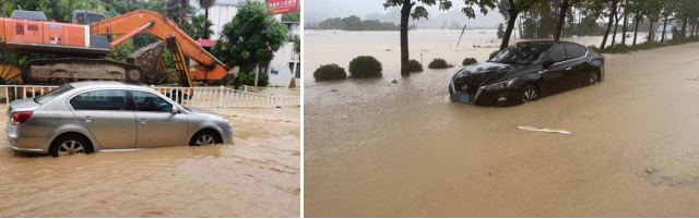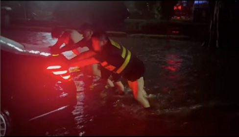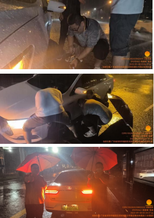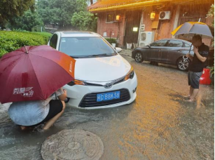 阳光财险深圳分公司迅速联系超50家合作车商 组建一支线上、线下协同行动救援队 全力投入紧急抢险工作 及时转移水淹车客户至安全地带 协助受灾车辆救援并保障客户优先修理  “听我的,握紧方向盘,我拉你出来” 受暴雨影响 泉州市区多处路段积水 客户送孩子前往学校过程中 未及时发现匝道上的井盖已被雨水冲翻 驱车涉水时不慎陷入下水口 轮胎被紧紧地卡住动弹不得 心急如焚