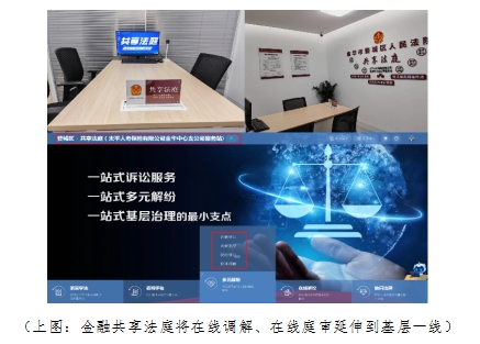 根据浙江省高级人民法院、国家金融监督管理总局浙江监管局指导精神,太平人寿浙江地区服务网点在地方法院指导下,相继成立金融共享法庭,通过协同参与社会治理,积极探索创新金融服务手段,提升行业矛盾纠纷预防和化解能力,深入贯彻落实在社会基层坚持和发展新时代“枫桥经验”。 金融共享法庭以智慧法院为切入点,以“一屏一线一终端”为标准配置,以数字化平台为依托,全力打造具备调解指导、线上线下调解和诉讼、基层治理等功能的最小支点,将在线调解、在线庭审延伸到基层一线。
