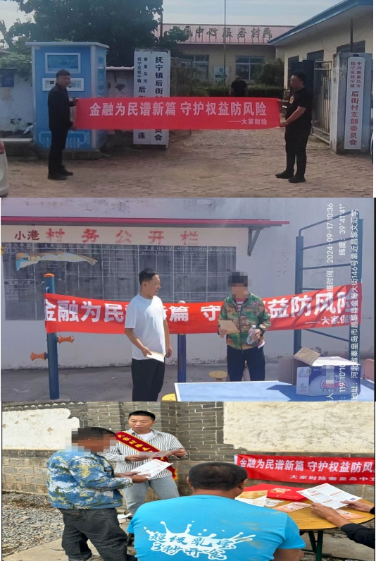 为深入践行金融行业的社会责任,促进金融知识深入基层,增强公众对金融服务的理解与信任大家财险秦皇岛抚宁支公司、昌黎营销服务部、卢龙营销服务部负责人积极走进农村开展金融教育宣传活动,向村民发放消费者权益保护、防范非法集资、反洗钱、网络诈骗等宣传折页,通过讲解真实案例,引导村民了解以房养老诈骗、电信诈骗等非法金融活动形式,揭示金融诈骗手法和主要特点,重点提醒老年人注意宣扬“保本高收益”的非法金融活动,提高反诈防骗意识。