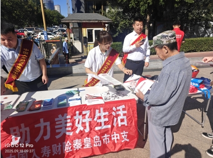 9月18日上午,国寿财险秦皇岛中支积极响应市保险行业协会号召,文化路街道服务里社区进行“金融教育宣传周”活动,我司围绕“保障金融权益 助力美好生活”主题,通过发放《防范非法集资手册》《车险理赔小贴士》等折页,结合真实案例向居民讲解金融诈骗识别技巧、保险消费误区及理赔流程,现场累计发放资料150余份,接受咨询40余人次,互动热烈。